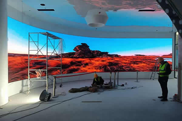 這是除了LED平面屏外,比較受客戶喜歡的安裝方式,可選擇內(nèi)弧彎曲、外弧彎曲,或波浪彎曲等安裝方式,具體弧度大小一般根據(jù)實(shí)際顯示需求來(lái)決定,可以做成多樣化的LED弧形屏。