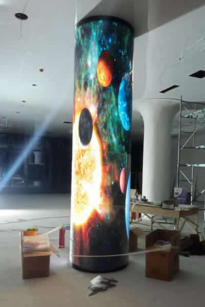 這種屏幕在商場(chǎng)、展館、寫(xiě)字樓以及各種公共活動(dòng)區(qū)域等地方比較常見(jiàn),即是在圓柱上安裝LED顯示屏,360度全方位都可以看到顯示畫(huà)面,當(dāng)然也有些一些客戶是在矩陣柱子上安裝的。LED圓柱屏的設(shè)計(jì)新穎、時(shí)尚,契合建筑物的造型,可任意拼接,它的應(yīng)用場(chǎng)所廣泛,是眾多媒體展示場(chǎng)所的新寵。不僅能夠多角度環(huán)視,而且消除觀賞死角區(qū),可以達(dá)到LED大屏顯示的效果。