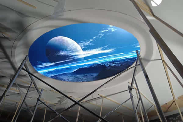這種安裝方式主要應(yīng)用在展廳、展館這些展覽場(chǎng)合,即是在頭頂上方安裝LED屏幕,可以以圓形、橢圓形、矩陣等結(jié)構(gòu)安裝,給觀眾帶來(lái)更多新奇的體驗(yàn)。